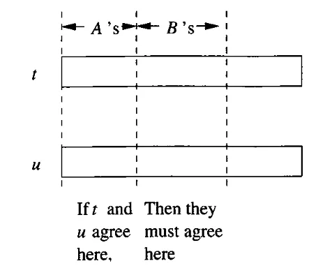 릴레이션 R의 두 튜플 t와 u에 대하여, 그림으로 표현하자면 아래와 같은 상황이다.