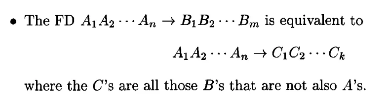 - FD 중에서 하나라도 사라지면, 더 이상 S와 동등하지 않다. 혹은 더 이상 S의 기저(basis)가 아니게 된다.
