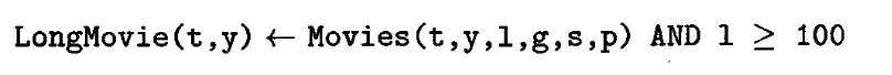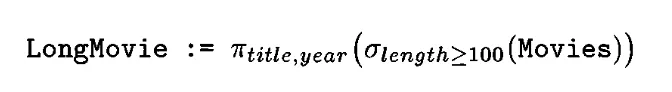 만약 우리가 “길이가 100분이 넘는 영화”들을 모아 LongMovies라는 릴레이션을 만들것이라면 아래와 같이 표현 할 수 있다.