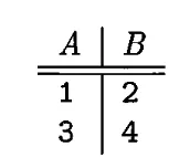 R(a1, a2, …, an) 은 (a1, a2, …, an)이 R에 속하는 튜플이면 TRUE, 아니면 FALSE를 반환한다. 아래의 릴레이션 R에서 R(1,2)와 R(3,4)는 TRUE지만, R(1,3)은 FALSE다.