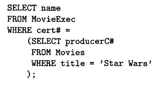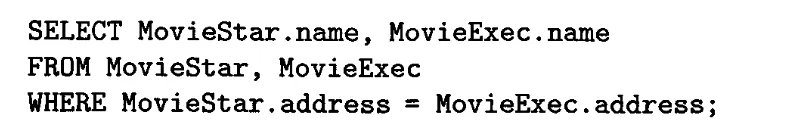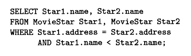 심지어는 릴레이션 안에서 서로 다른 튜플끼리 연산을 시킬수도 있다. Star1.name < Star2.name 절은 순서만 바뀐 두 튜플이 서로 다른 결과로 나오는 것을 막기 위해 존재한다.