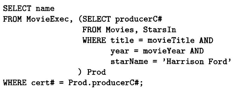 다행히, 이 경우는 Movies와 MovieExec 사이에 겹치는 이름의 속성이 없었다. 만약 있다면 명시적으로 구분해줘야 한다.