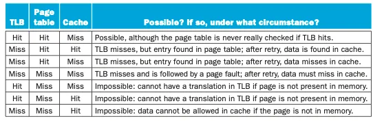 모든 참조에서 페이지 테이블보다 TLB에 먼저 접근하게 된다. 읽기 작업에서 TLB 히트가 발생하면 참조(ref) 비트를 켜고, 쓰기 작업에서 히트가 발생하면 더티(dirty) 비트도 켠다. 만약 TLB 미스가 발생하면 단순 TLB 미스인지, 페이지 폴트인지 구분해야 한다. 단순 TLB 미스라면 페이지 테이블을 참조하여, TLB를 갱신하고, 페이지 폴트라면 OS의 예외처리에 맡긴다.