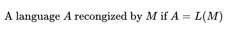 이 $\hat{\delta}$를 이용해서, 어떤 DFA M이 인식하는 언어 A를 아래처럼 담백하게 다시 정의할 수 있다.