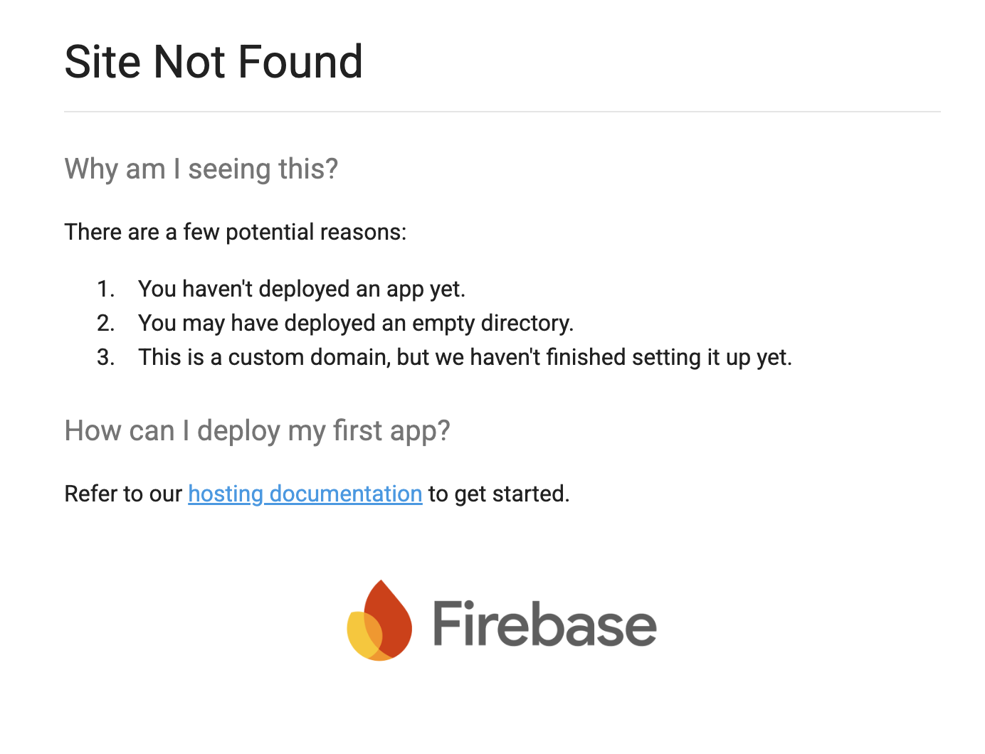 Firebase Hosting에 도메인 주소를 추가했는데 아래와 같은 화면이 뜨면 당황스럽다.